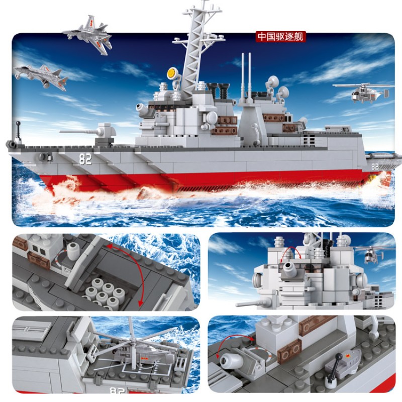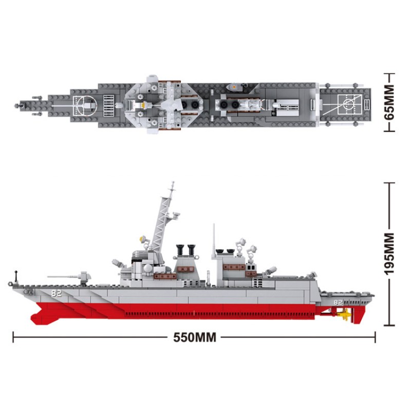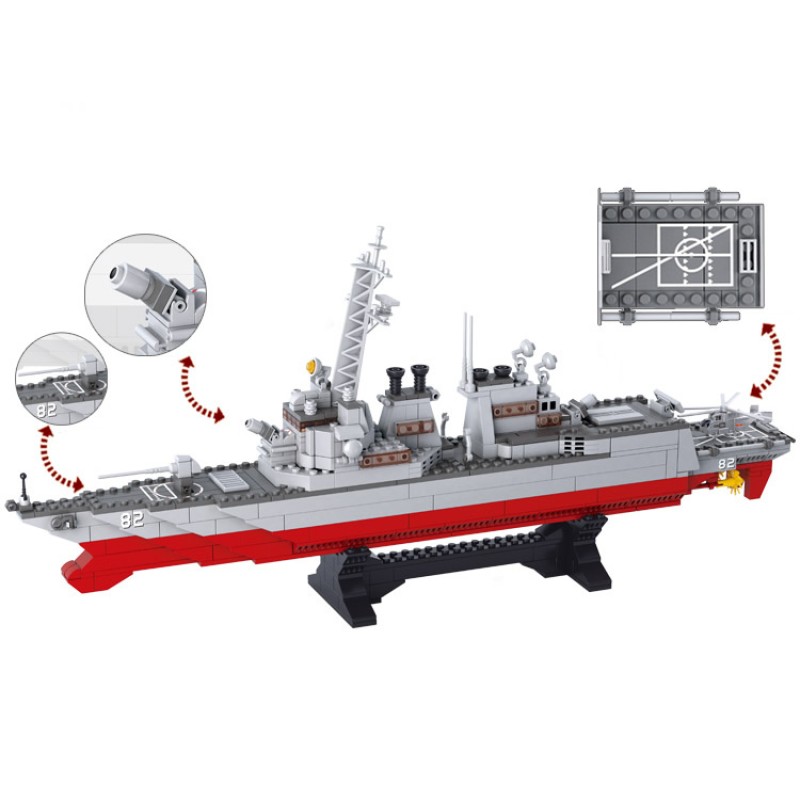 This set contains 615 building bricks which can be assembled into a 1:350 scale model of a Navy Destroyer.