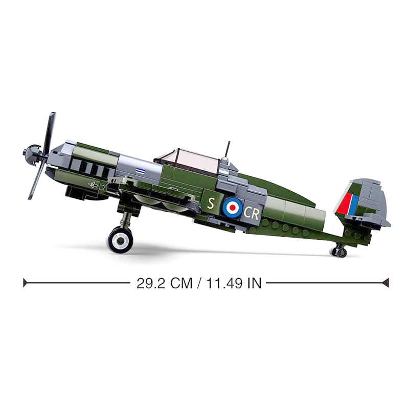 This military building block set includes all the pieces needed to make a WW2 spitfire fighter plane.